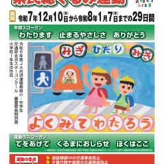 - 2025/12/05 年末年始の交通事故防止運動 12月10日から「年末年始の交通事故防止県民総ぐるみ運動」がスタートします。(令和8年1月7日ま... 続きを読む