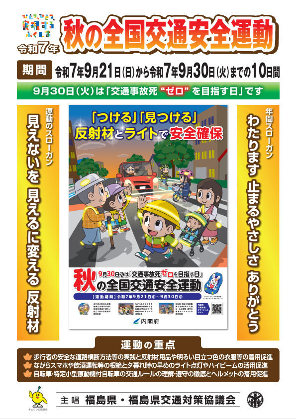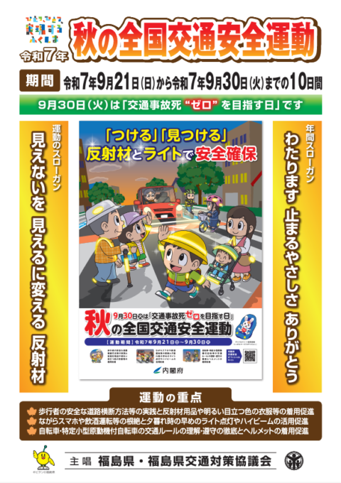 9月21日(日)から30日(火)までの10日間、「秋の全国交通安全運動」が展開されます。