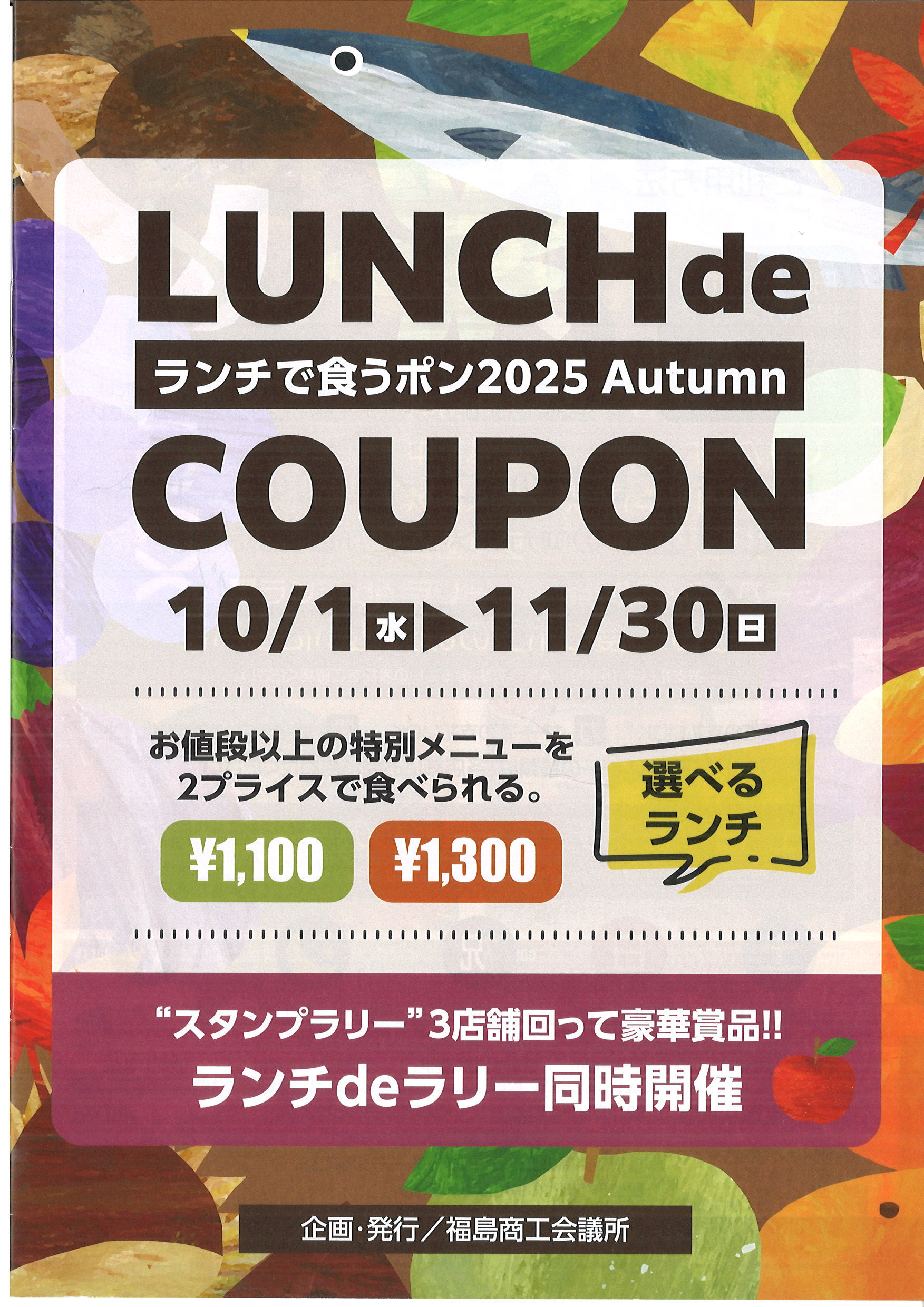 恒例の福島商工会議所の大好評企画“「LUNCH de COUPON」”が開催されています。
