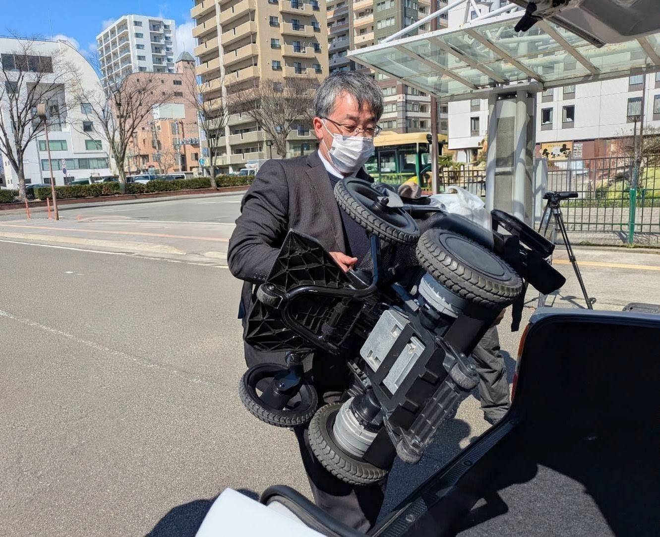 福島市観光案内所で電動車イス「WHILL」を貸し出すことに伴い、WHILLの利用の仕方、タクシーへの積み込み方などの研修を受けてきました。